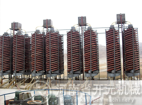 共有五臺φ2400×1800毫米圓錐形球磨機(jī),其中有四臺與φ2400×8000毫米靶式分級機(jī)構(gòu)成閉路,一臺球磨機(jī)與φ2000毫米高堰式單螺旋分級機(jī)構(gòu)成閉路。球磨機(jī)的處理量為17.5噸/臺·時。分級機(jī)溢流濃度為40~50%,粒度為50%-0.074毫米。